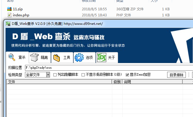 这下就识别不了。D盾只对第一层压缩包进行扫描,并不会对压缩包里的压缩包进行扫描,通过这个小技巧我们可以用来隐藏后门。